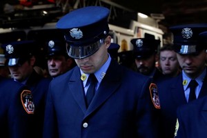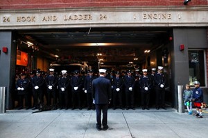 آتش نشانان شهر نیویورک در مراسم یادبود قربانیان در بیستمین سالگرد حمله 11 سپتامبر به برج های دوقلو نیویورک/ رویترز