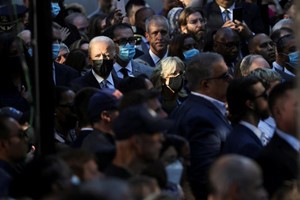 حضور جو بایدن و باراک اوباما روسای جمهوری کنونی و سابق آمریکا و همسرانشان در مراسم بیستمین سالگرد واقعه 11 سپتامبر در شهر نیویورک/ رویترز
