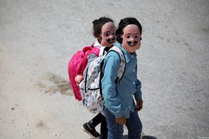 بازگشایی مدارس فلسطین در کرانه باختری. دو دانش آموز با ماسک در حال عزیمت به مدرسه/ رویترز